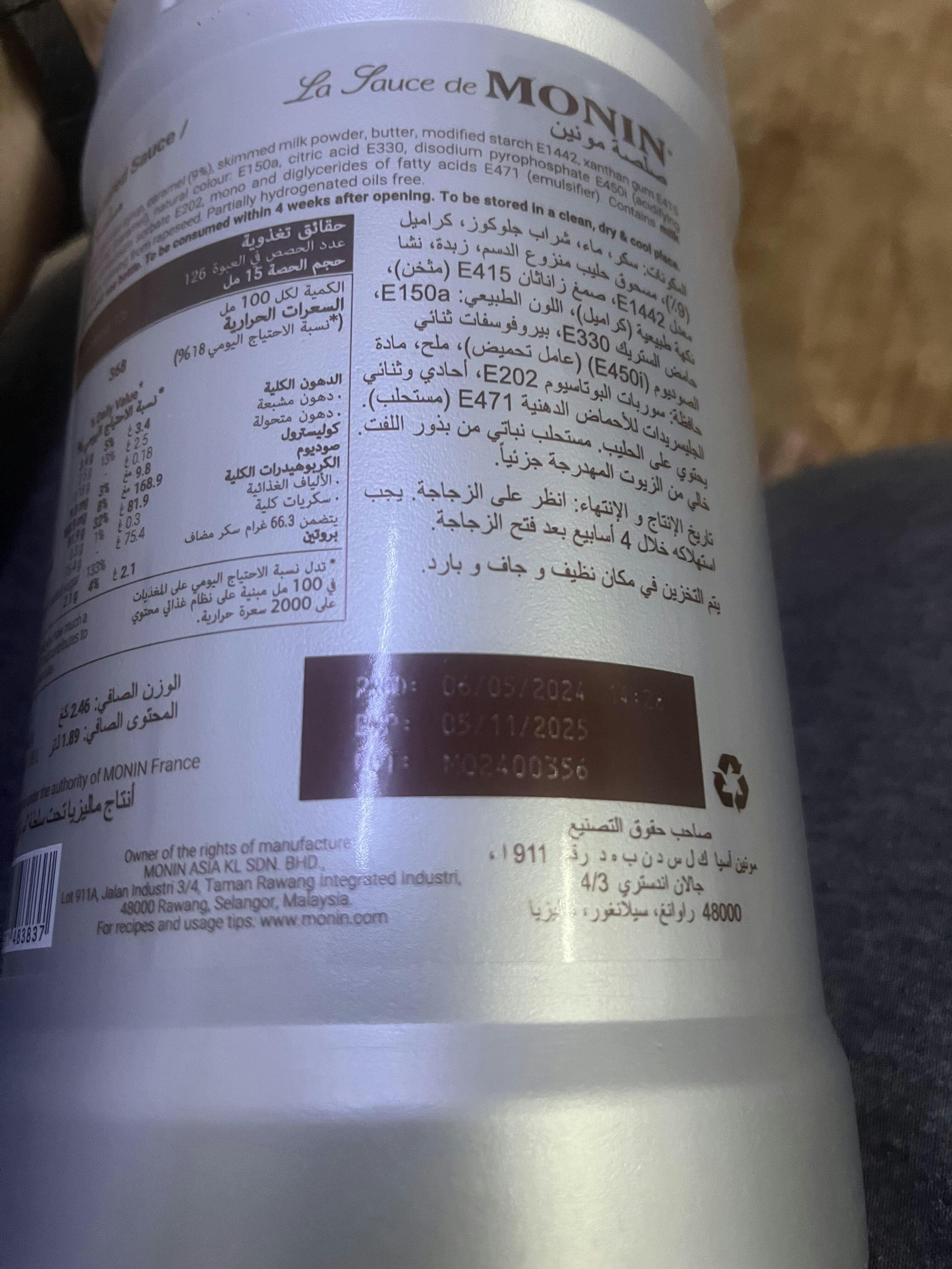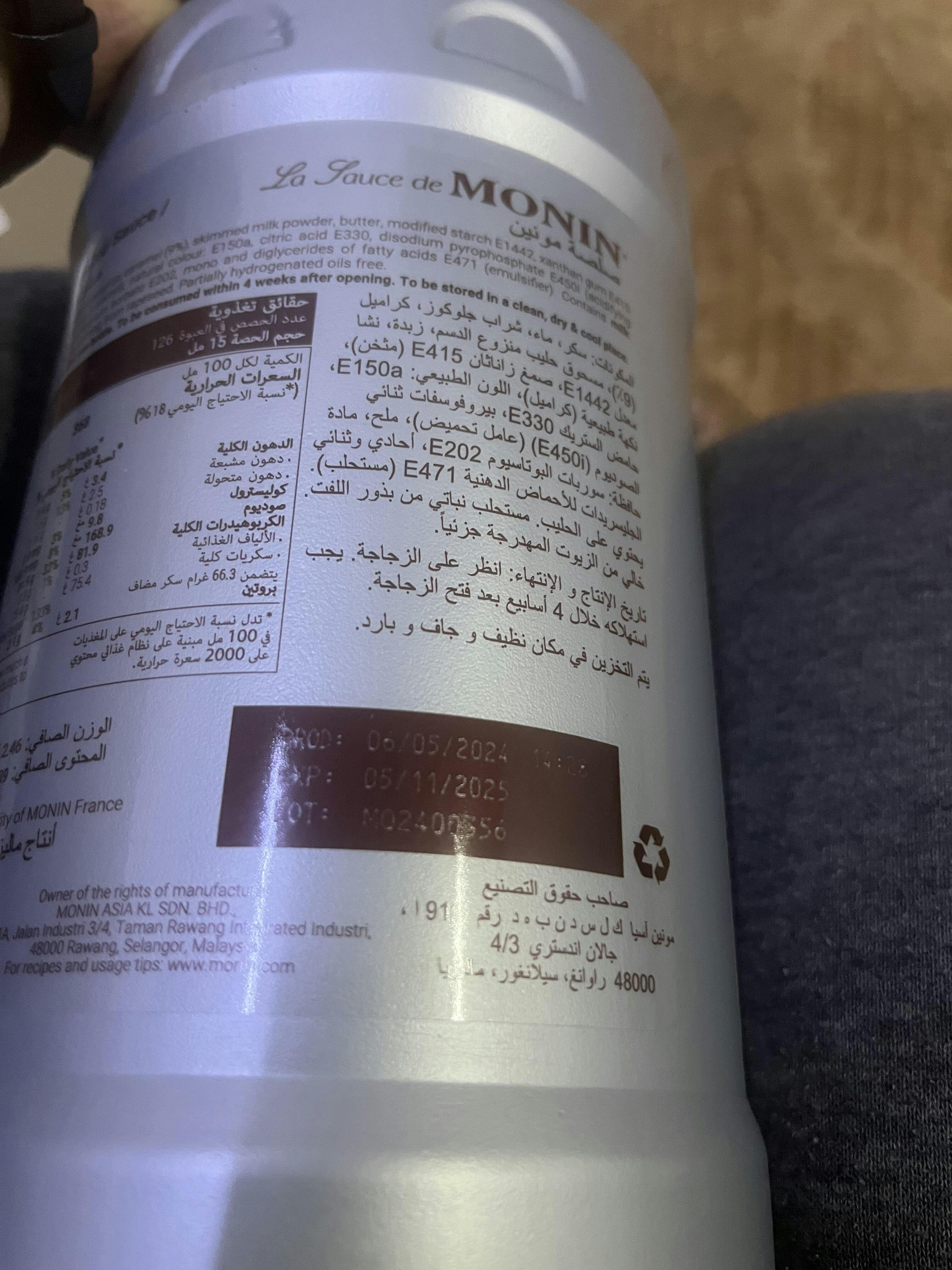 صوص الشوكولاته البيضاء اللذيذة من شركة مونين الفرنسية يستخدم لإضافاته لبعض مشروبات القهوة واللاتيه ووايت موكا وغيرها من المشروبات الساخنة والباردة والحلويات